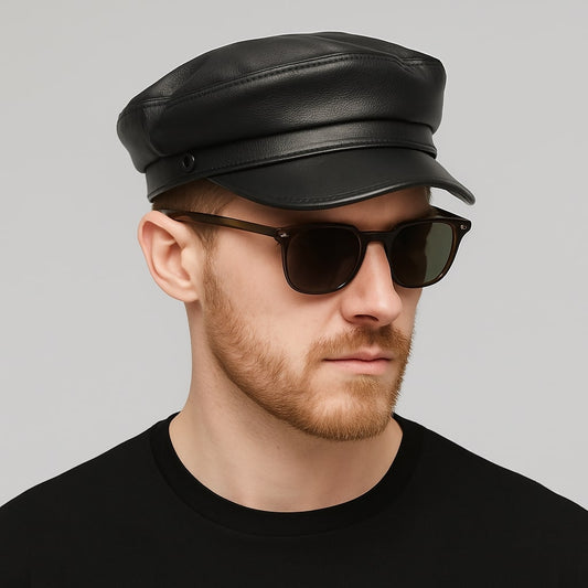 Leather Sailor Cap – Genuine Sheepskin With Short Brim