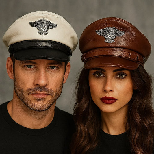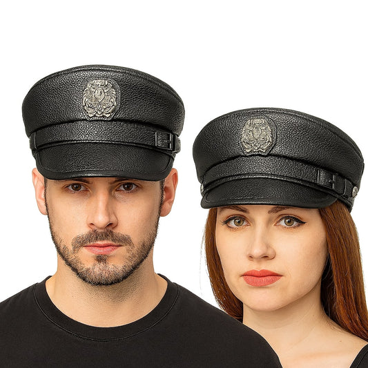Leather Sailor Cap – Statement Badge & Structured Visor
