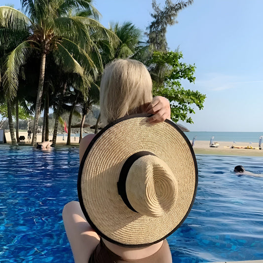 Straw Hat – Extra Wide Brim With Bold Black Band