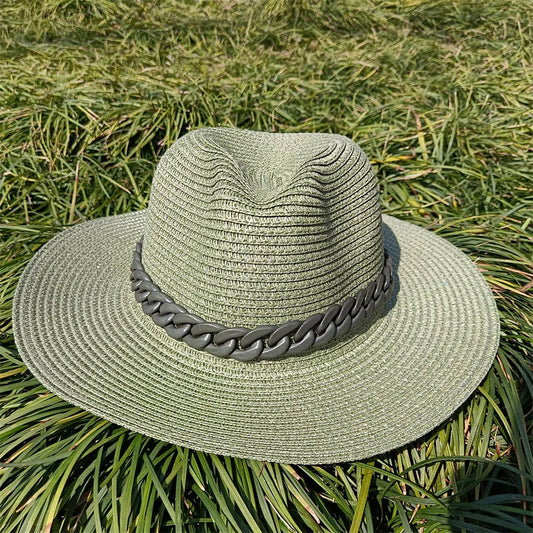 Straw Panama Hat With Chain Detail