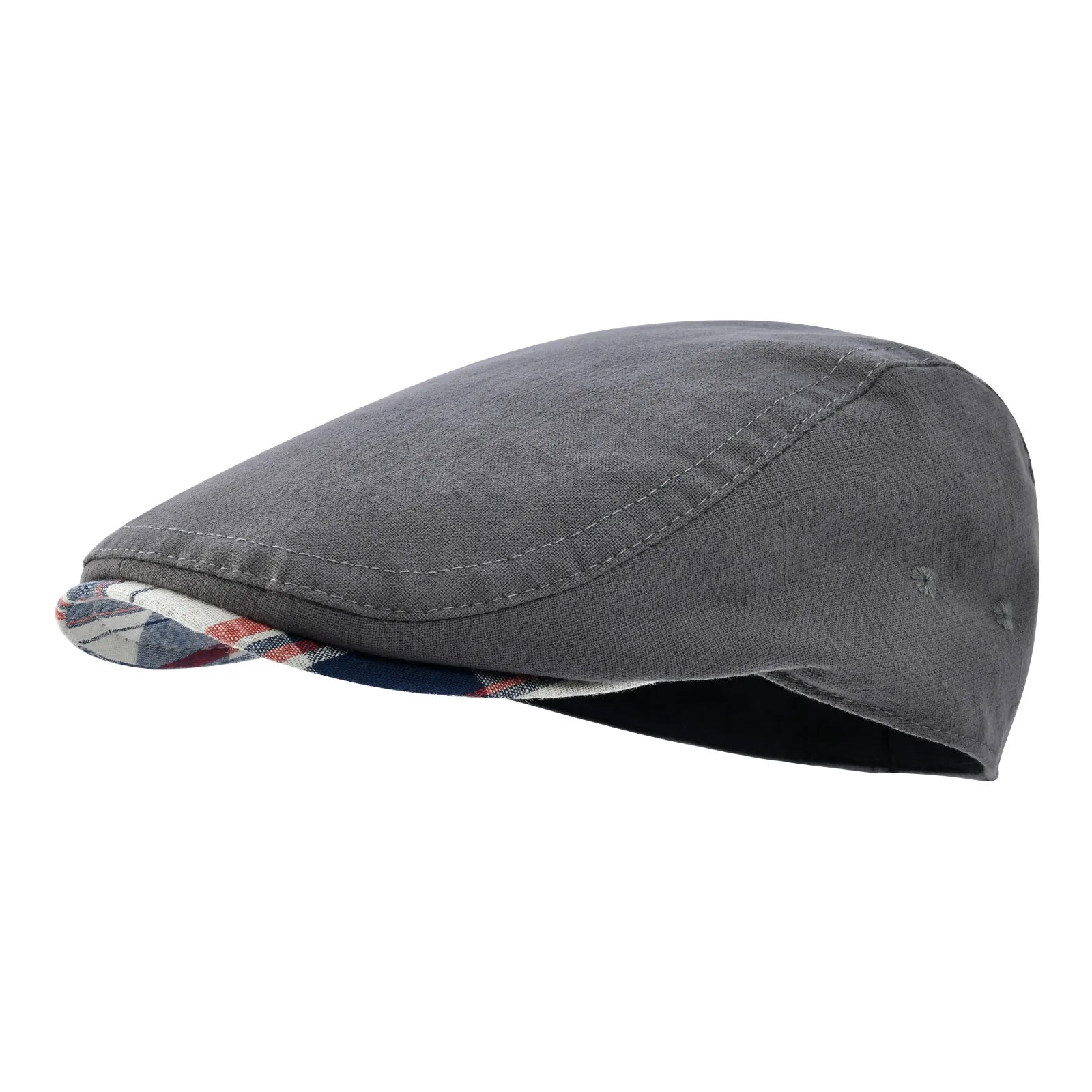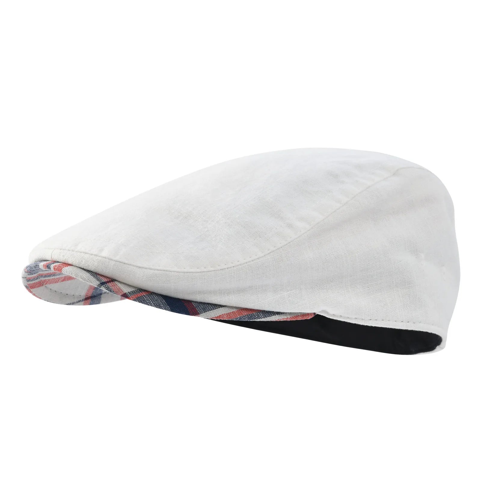 This linen flat cap features a refined silhouette with a discreet plaid detail under the brim. Designed for everyday style, it brings a modern touch to a timeless classic.