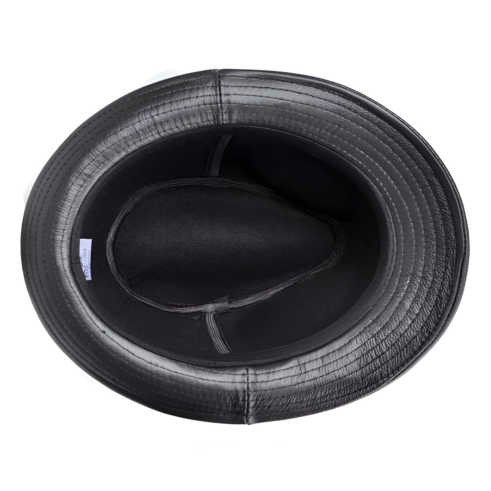 This trilby hat is ideal for cooler days and mild evenings. Genuine leather ensures excellent shape retention and comfort, while the polyester lining feels soft against the skin. Its versatile design makes it a great choice to complement both urban chic and relaxed styles.