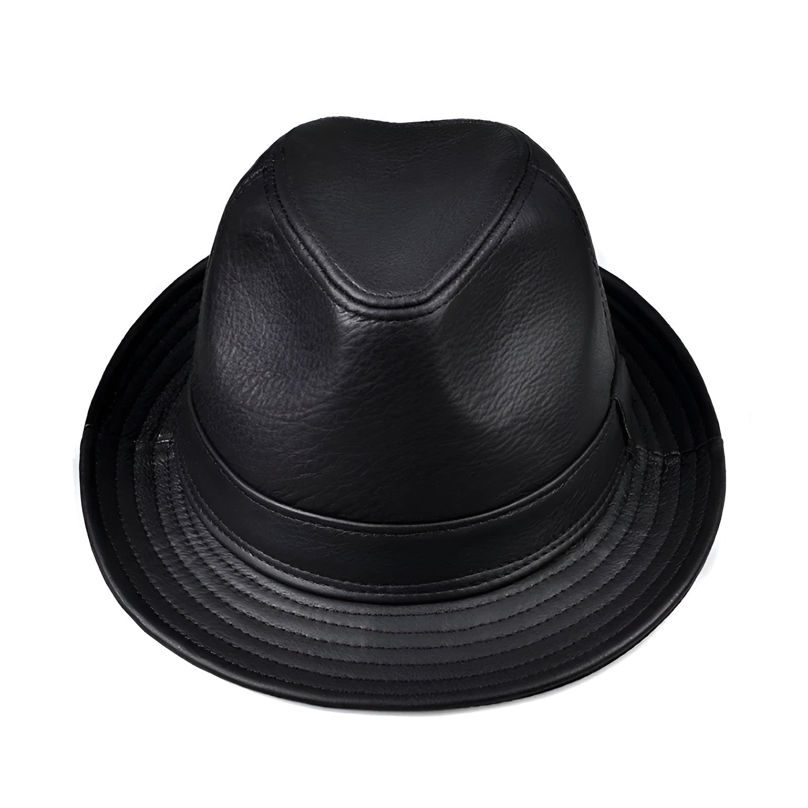 Crafted from premium cowhide leather, this trilby hat embodies refined style with a confident edge. Its supple yet durable texture ages beautifully over time. The structured crown and short upturned brim give it a distinctive look, perfect for elevating both casual and dressy outfits.
